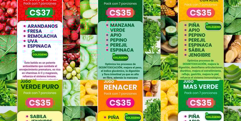 Mezclas naturales elaboradas con ingredientes frescos para apoyar la digestión, desintoxicar el cuerpo y mejorar tu bienestar diario.