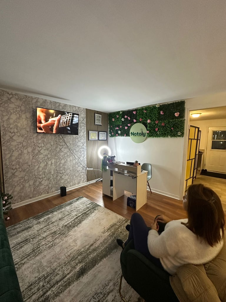 El entorno juega un papel protagonista en nuestra terapia. Nuestras cabinas están acondicionadas con una iluminación tenue y cálida (cromoterapia) que invita al descanso visual inmediato. Acompañamos la sesión con una selección de frecuencias sonoras y música binaural diseñada científicamente para reducir la actividad cerebral beta (estado de alerta) y fomentar las ondas alfa y theta (relajación y creatividad).